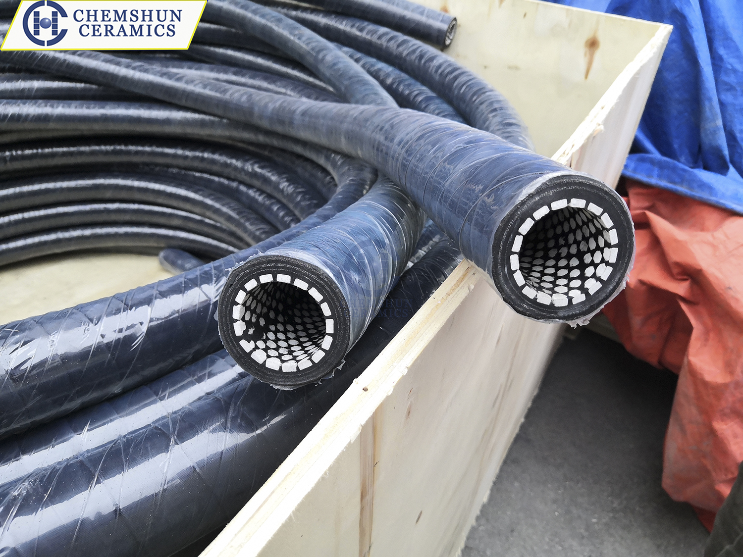 Regarding performance parameters, the technical specifications of this product vary according to application requirements. The ceramic layer typically has a density of ≥3.6 g/cm³ and a bending strength exceeding 290MPa. While it can withstand high temperatures up to 1400°C, the long-term working temperature is generally controlled between -30°C and 150°C in continuous operation due to the temperature limitations of the rubber layer . The hose specifications are flexible, with nominal diameters ranging from 25mm to 1200mm, single lengths up to 20 meters, and working pressure grades between 1MPa and 4MPa . Furthermore, the ceramic tiles are often designed in hexagonal or circular shapes and are precisely arranged and vulcanized to ensure a smooth inner wall with low fluid resistance .